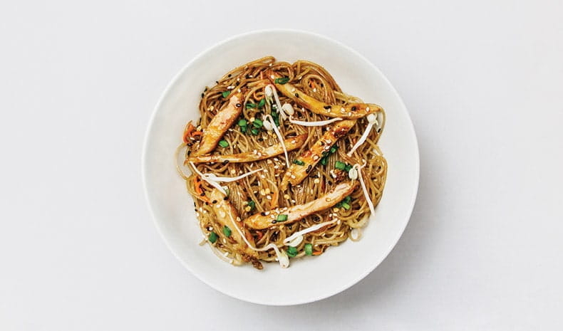 Куряче філе, цибуля ріпчаста, морква, капуста б/к, яйце, зелена цибуля, кунжут, оригінальний соус wok.