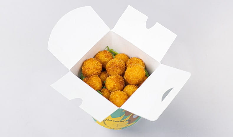 Моцарела,мікс спецій і трав, яйце, кукурудзяно-пшеничне панірування, медово-гірчичний соус.